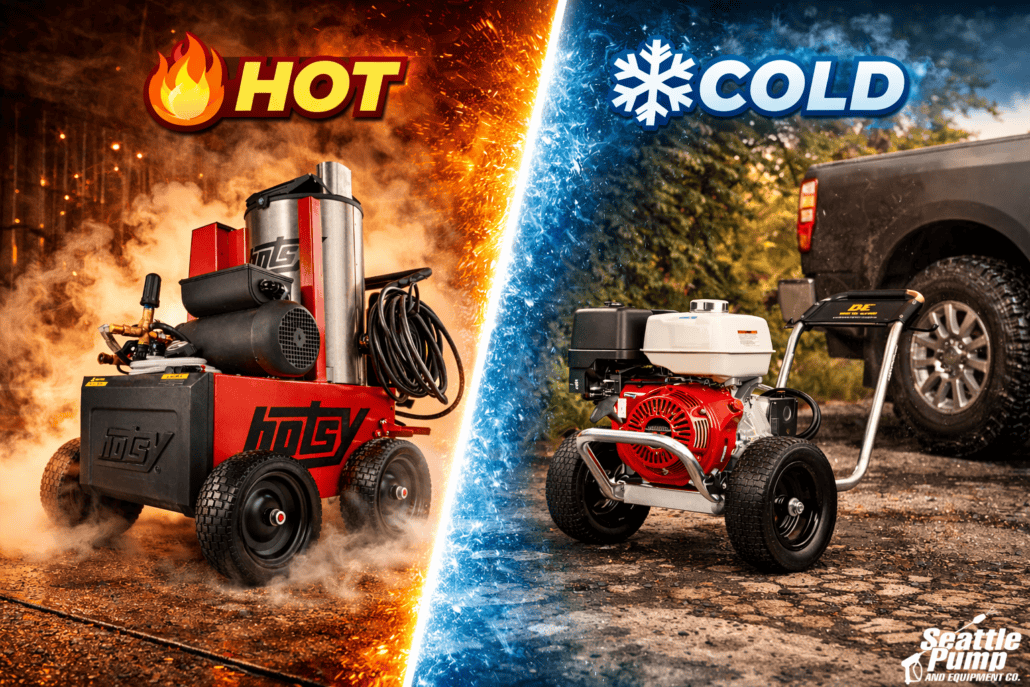 One of the most common questions we hear at Seattle Pump & Equipment is whether a hot or cold water pressure washer is the right choice. On the surface, the difference seems simple. One uses heat, one does not. In reality, that decision can affect cleaning results, job time, operating costs, and long-term equipment wear.